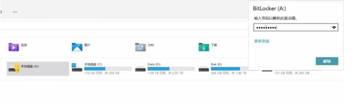 8、平时访问该磁盘分区的时候,需要输入密码以解锁。