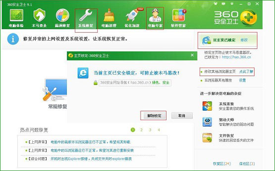 2、用电脑上已安装的系统修复工具进行修复,修复完成后重启,看看问题是否已经解决。