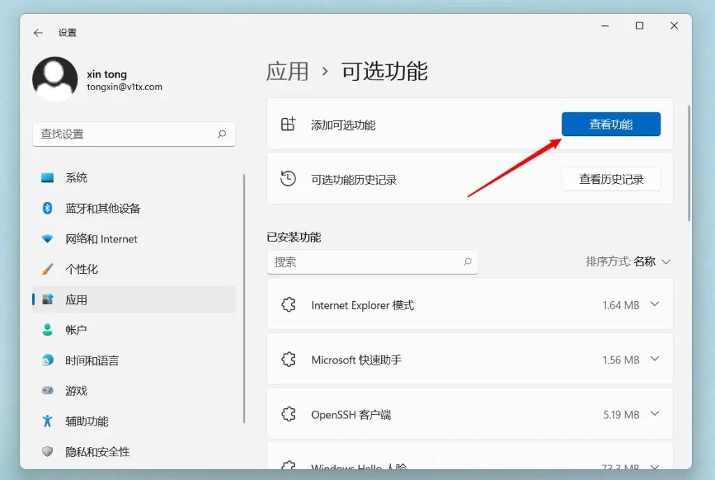 在可选功能设置中,点击添加可选功能后边的 查看功能 按钮;