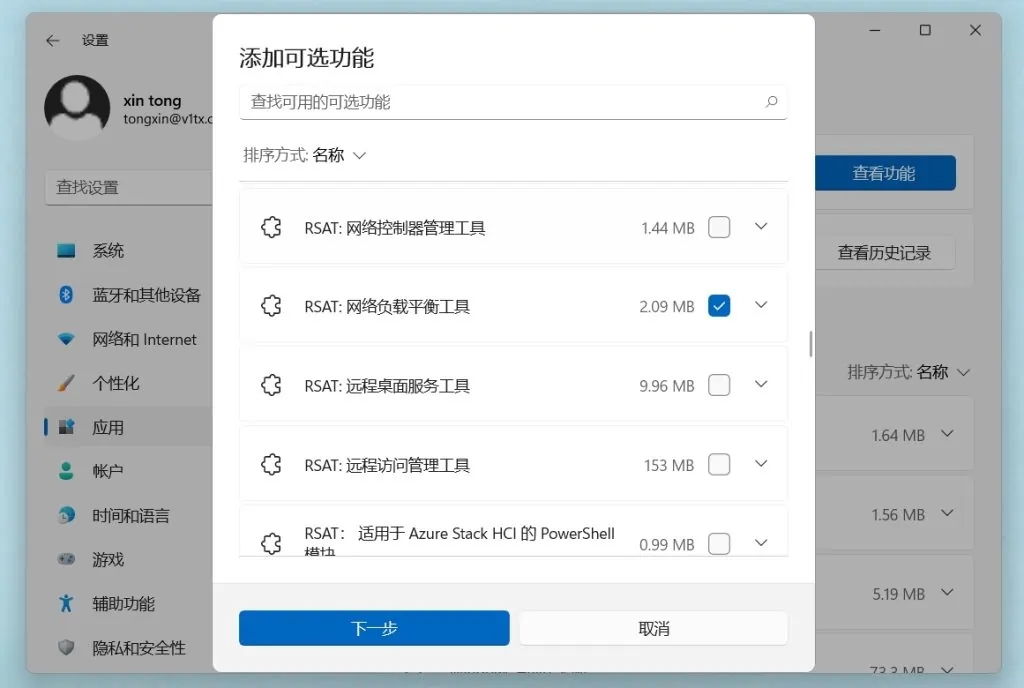 你会看到目前可以直接安装的Windows可选功能,找到自己需要使用的功能,然后点击下一步即可安装该可选功能;