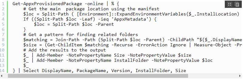 以下是在 PowerShell 中查看所有 Windows 应用大小的脚本,包括默认应用和从 Microsoft Store 下载的应用(需要先取消隐藏 WindowsApps 文件夹):