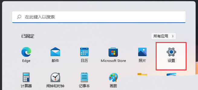 2、这时候,会打开开始菜单,然后找到并点击已固定应用下的设置;