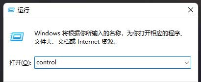 2、运行窗口,输入control命令,按确定或回车,打开控制面板;