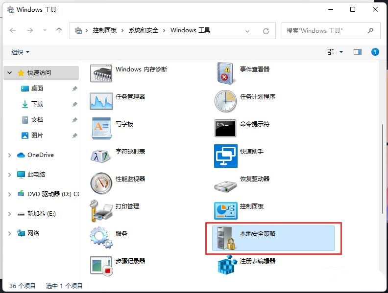 5、windows 工具窗口,找到并双击打开本地安全策略;