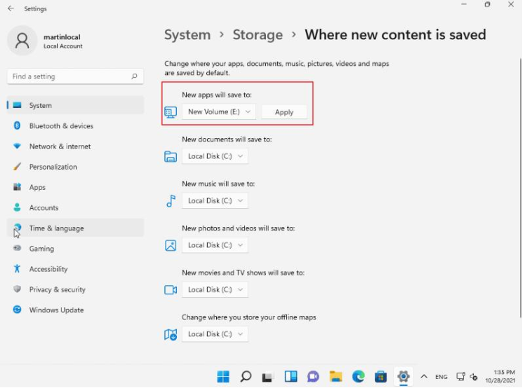 切换驱动器后选择应用按钮以将新驱动器设置为新文件的默认保存位置。