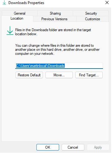 右键单击下载(或显示在那里的任何其他文件夹)并选择属性。