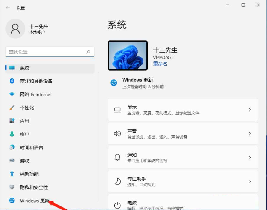 2、设置(Win+i)窗口,左侧点击Windows 更新。