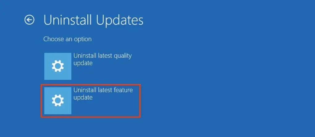 10、单击“卸载功能更新”按钮以删除 Windows 11 22H2。