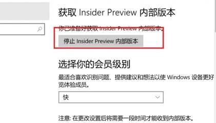 4、最后点击下面的“停止insider preview内部版本”即可退出。