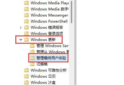 4、接着,继续往下展开,找到Windows 更新,点击管理最终用户体验;