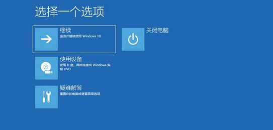 1、首先我们需要强行多次重启电脑,然后开机的时候会自动进入到系统修复页面,选择“疑难解答”。