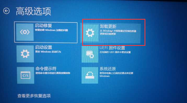 3、在高级选项页面中,我们可以点击启动修复,来修复妨碍Windows加载的问题;或点击卸载更新,卸载掉最新一次有问题的更新;点启动设置,可以选择进入安全模式;点击命令提示符,可通过命令来修复系统文件;点击系统还原,可以还原到上一次正常时的状态。