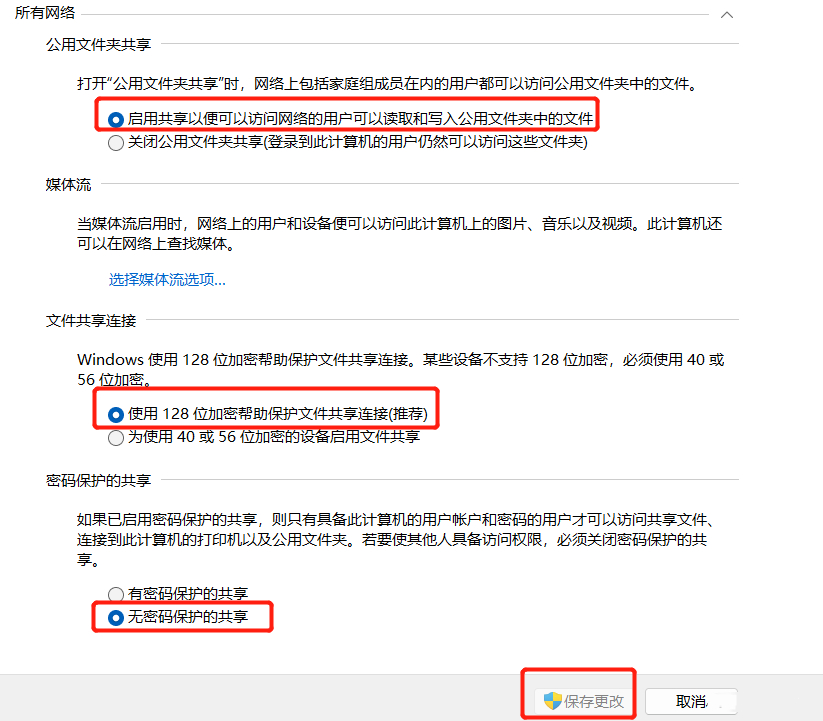 3、从控制面板打开,控制面板\所有控制面板项\网络和共享中心\高级共享设置。
