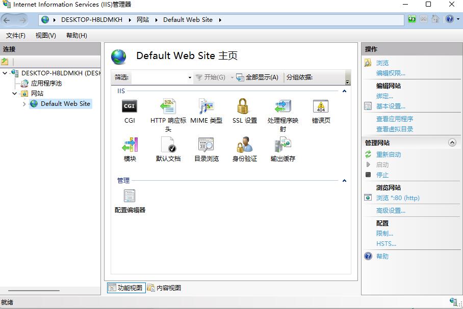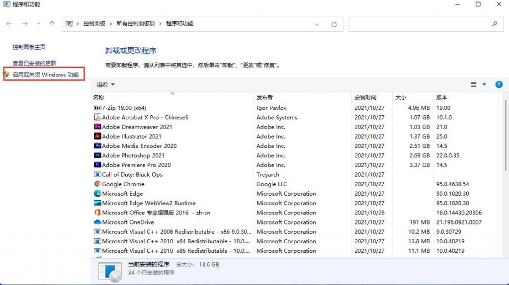 4、这样就可以安装iis了。或者直接在搜索框里搜索:功能,也会弹出下面这个窗口!
