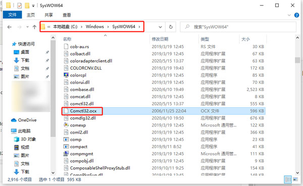 3、复制成功之后,打开【C:\Windows\SysWOW64】,然后右键选择【粘贴】,将“Comctl32.ocx”文件粘贴到SysWOW64文件夹下,如果提示无权限则使用管理员权限进行操作。