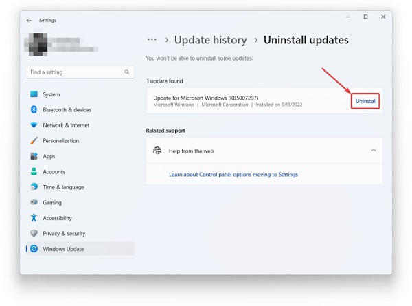 Win11 22H2怎么卸载已安装的更新补丁?