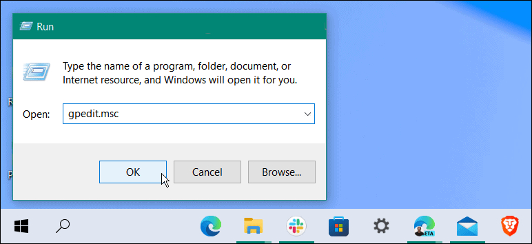 2、键入gpedit.msc并单击确定。