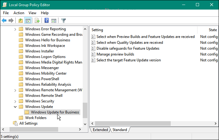 Local Computer Policy >Computer Configuration >Administrative Templates >WinComponents >WinUpdate >WinUpdate for Business