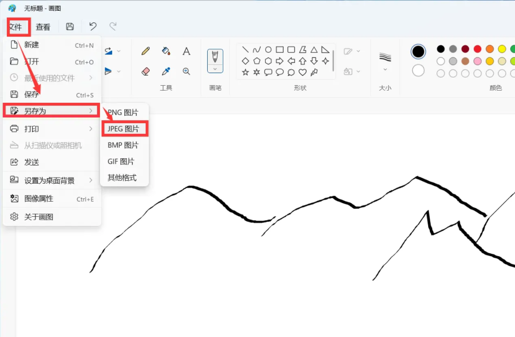 5、点击【文件】-【另存为】-【JPEG格式】即可导出图片。