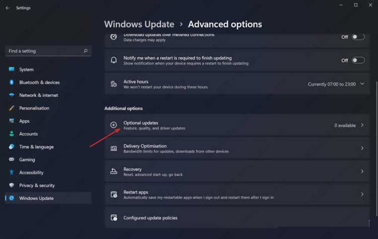 接下来,点击附加选项部分下的可选更新。