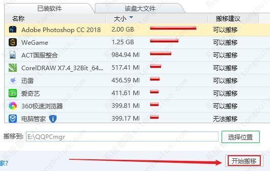 8、最终点一下“开始搬移”,等候软件移动结束就可以了。