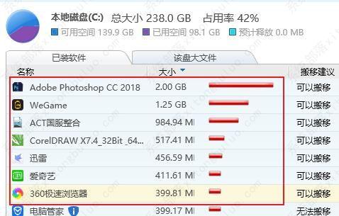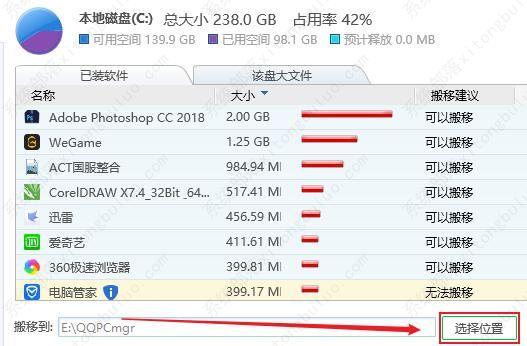 6、下面能够看见适用搬移的软件,选中必须移动的软件。
