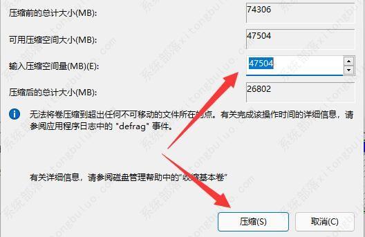 4、输入要想扩展的空间开展缩小,再点一下“确定”就能得到可用空间了。