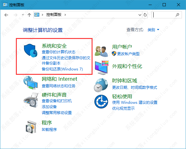 1、打开控制面板,点击其中的“系统与安全”;