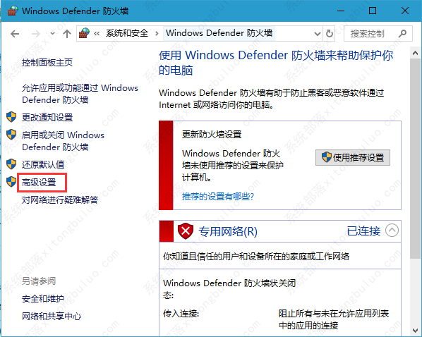 2、点击“Windows 防火墙”之后,打开“高级设置”;