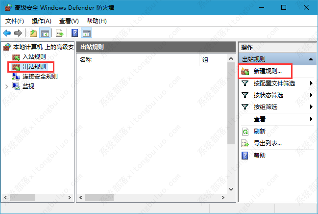 3、点击“出站规则”--新建规则;