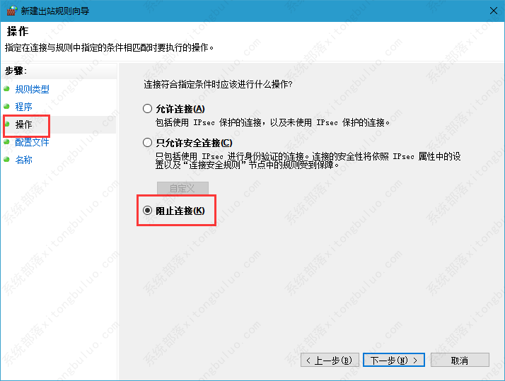 5、找到需要禁止的程序,勾选“阻止连接”,然后按照提示完成操作就可以了。