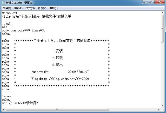 添加“显示|不显示 隐藏文件”右键菜单的批处理文件。源文件如下: