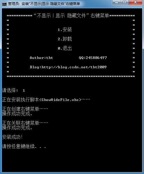 - echo正在安装执行脚本(ShowHideFile.vbs)……