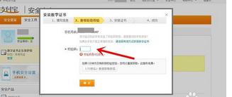 2、会有提醒你安装支付宝安全证书。输入你支付宝绑定的手机收到的验证码,即安装;