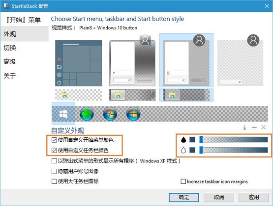如果大家觉得以上设置步骤比较麻烦,或则说不是特别透明的话,也可以使用一些软件来实现,比如可以在Win10电脑中下载安装「startisback」桌面美化工具,然后安装进行设置,如下图所示。