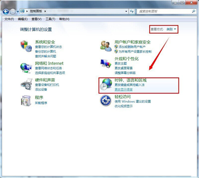 2、将查看方式设置成类别,然后点击时钟、语言和区域;