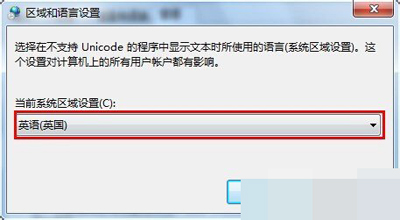 5、将当前系统区域设置设置成英语(英国),然后再点击确定按钮,最后再重启电脑;