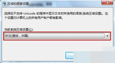 6、重启电脑后,将当前系统区域设置设置成中文(简体,中国),然后再点击确定按钮,最后再重启电脑。